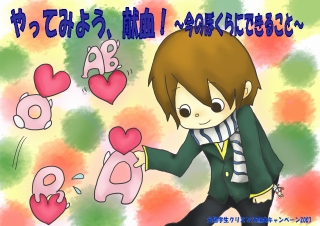 クリスマスあたりに是非近くの献血ルームに行ってみてください!!私の描いたポスターが貼ってあると思います♪